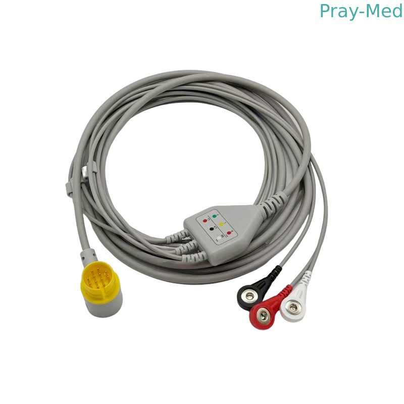 Lifegain CU-HD1 12Pin Tek Parçalı EKG Kablosu 3 Lider AHA Snap